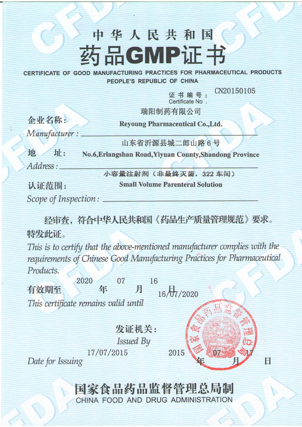 恭喜我公司合作的瑞陽(yáng)制藥有限公司榮獲GMP證書(shū)!